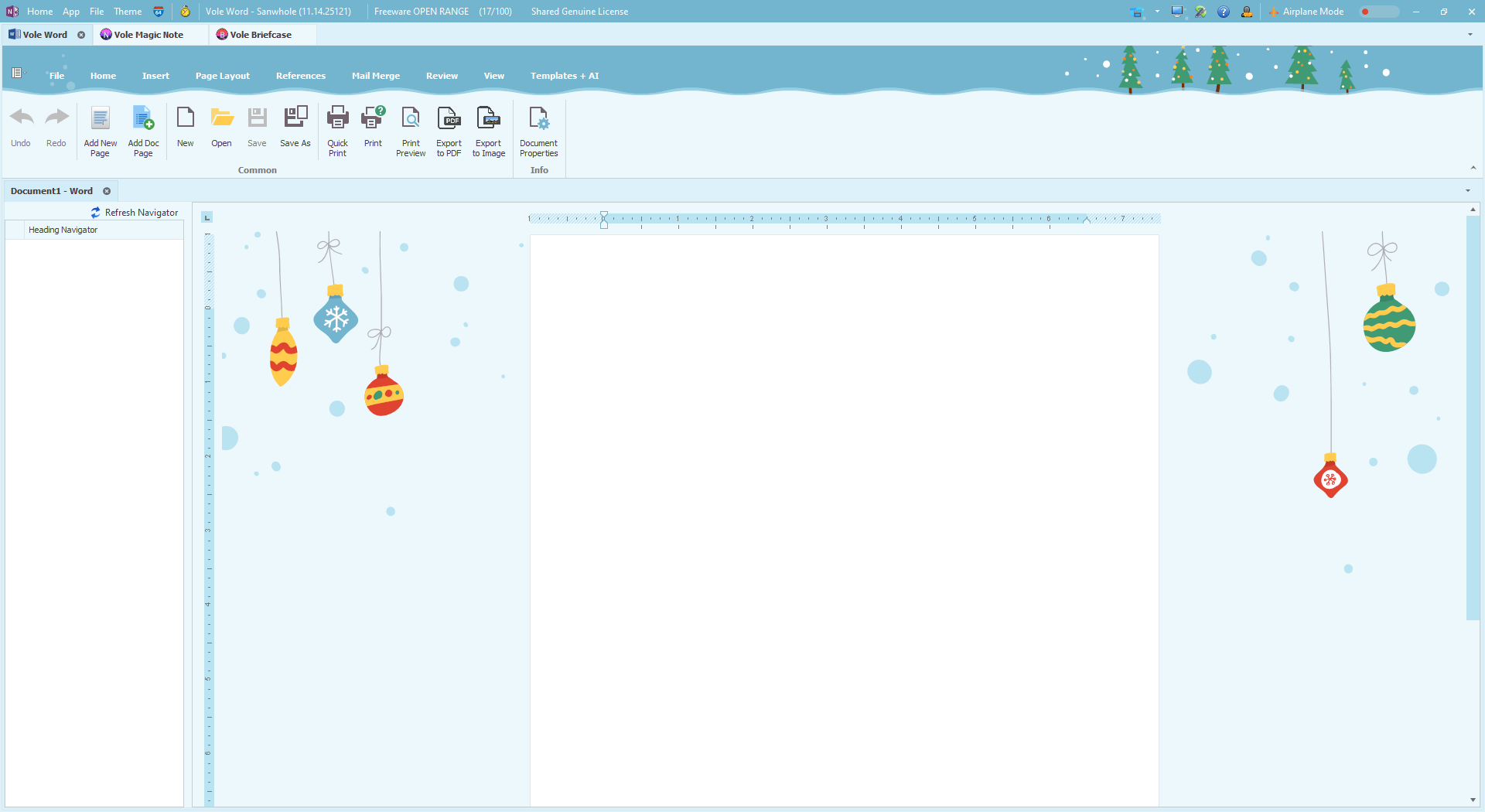 10.4.25033 | 2025-03-27 | + Vole Word and Vole Excel add two-screen, three-screen and multi-screen functions, making it possible to edit multiple Word and Excel files simultaneously in only one Vole Office software, making it convenient for users to compare files left and right and copy and paste operations [MP4]. ! Fixed media tool bugs.