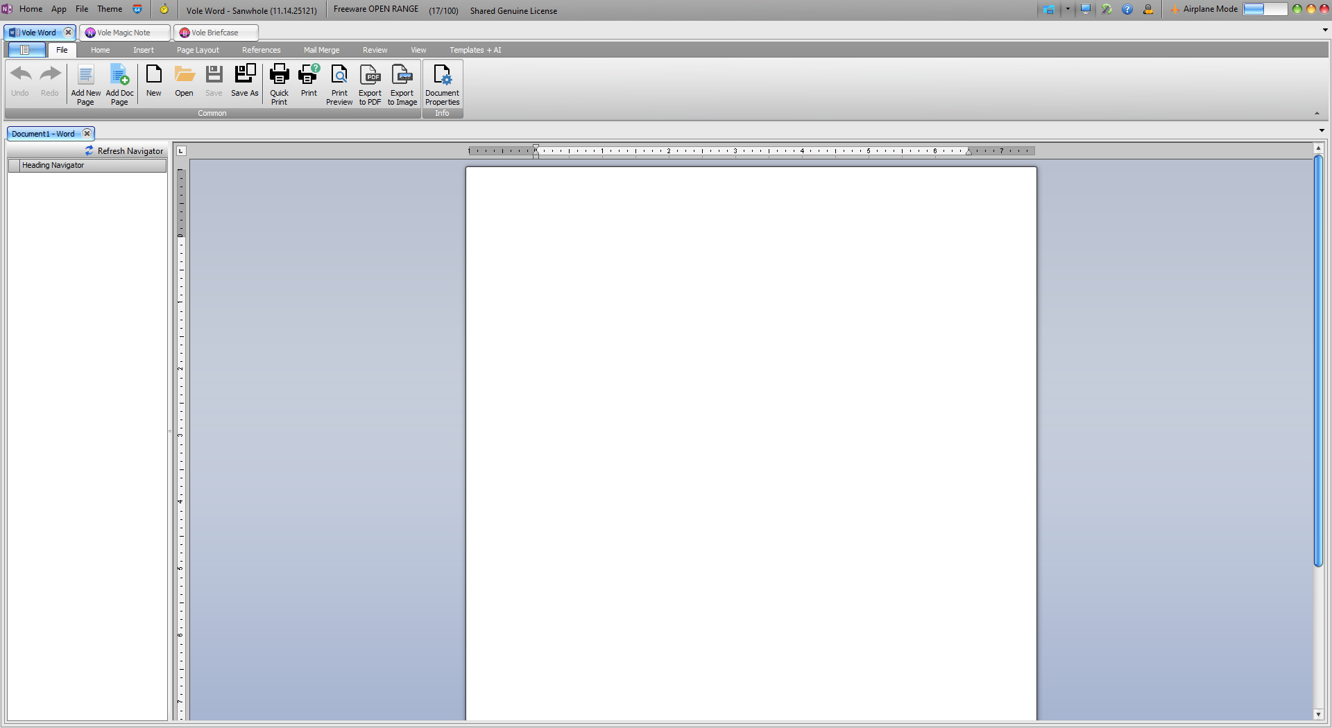 10.6.25042 | 2025-04-16 | -Cancel Vole Paint. + Moving into Vole Internet Expedition released in 2013 from Sanwhole Studio. + Layout saving, layout loading and startup automatic loading layout. Layout saving, loading and automatic loading can customize which software is automatically loaded when the software starts and restore the software display layout. +Added support for custom loading for all software such as Vole Word and Vole Excel. Custom loading includes: no loading, loading one and loading multiple. + Added software docking function. Software can be displayed overlappingly or tiled, or overlapping and tiled.